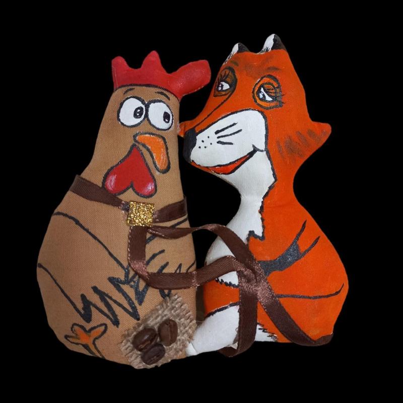 Текстильный магнит с ароматом кофе, ванили и корицы "Лисичка и курочка". Ручная работа Размер 14х13 см. Парный Милый подарок, который не оставит равнодушным одариевомого