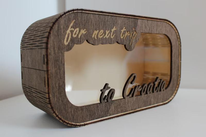 Копилка Изготовлена из фанеры и акрила.Надпись сделаем под заказ.Также можно подобрать другой цвет. Размеры: Ширина-18см Высота-10см Глубина-7см