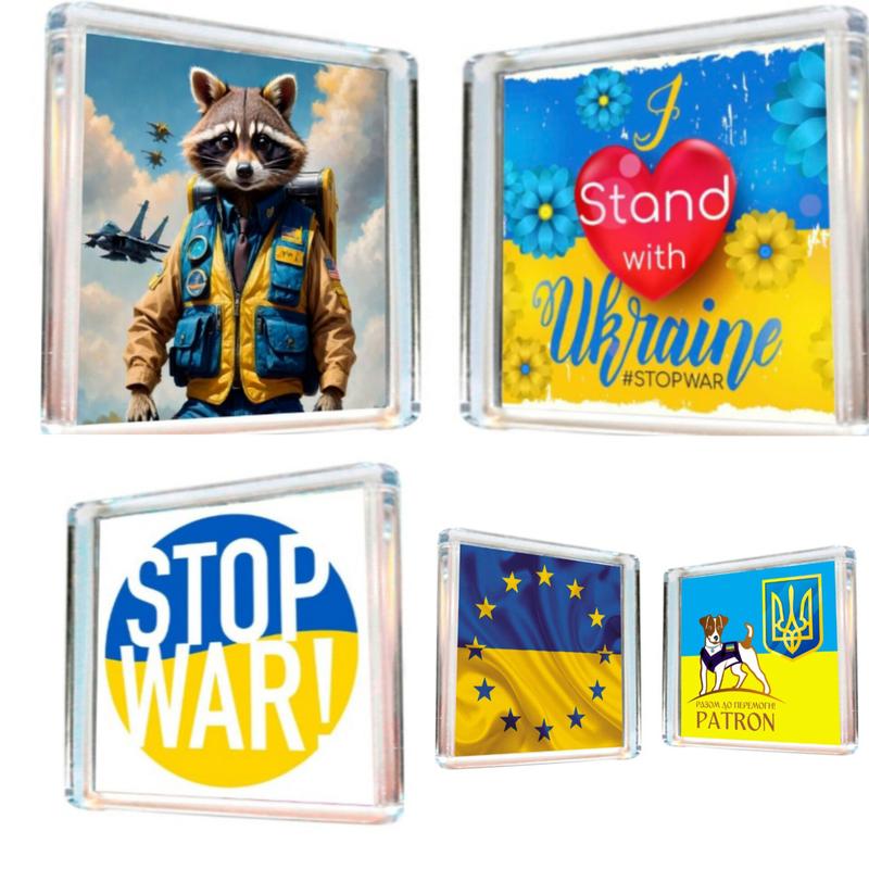 Магниты в пластиковом корпусе 5 штук Патриотические Размер 65 мм на 65 мм Каждый магнит упакован в полиэтиленовую индивидуальную упаковку Магниты толстые из прозрачного пластика (Материал Акрил), надежные, крепкие и долговечные