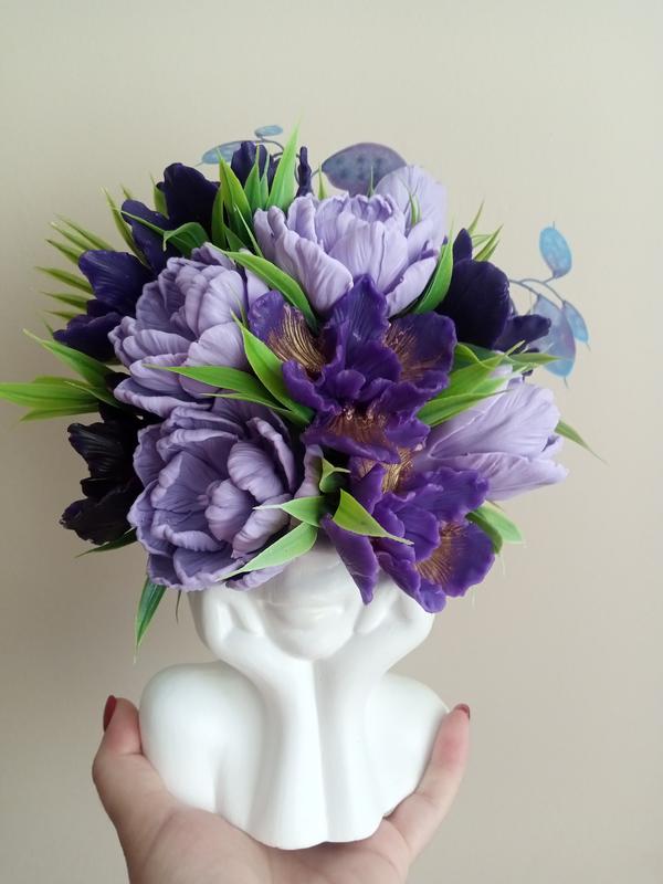 Композиция из натурального мыла, это не фабричный китай, а ручная работа!!! В орининалтном весе девушка украсит ваш Интерьер уточнюйте наявнвсть отправка укр и новая почта каждый день,букетики упаковываются и красиво переносят пересилку