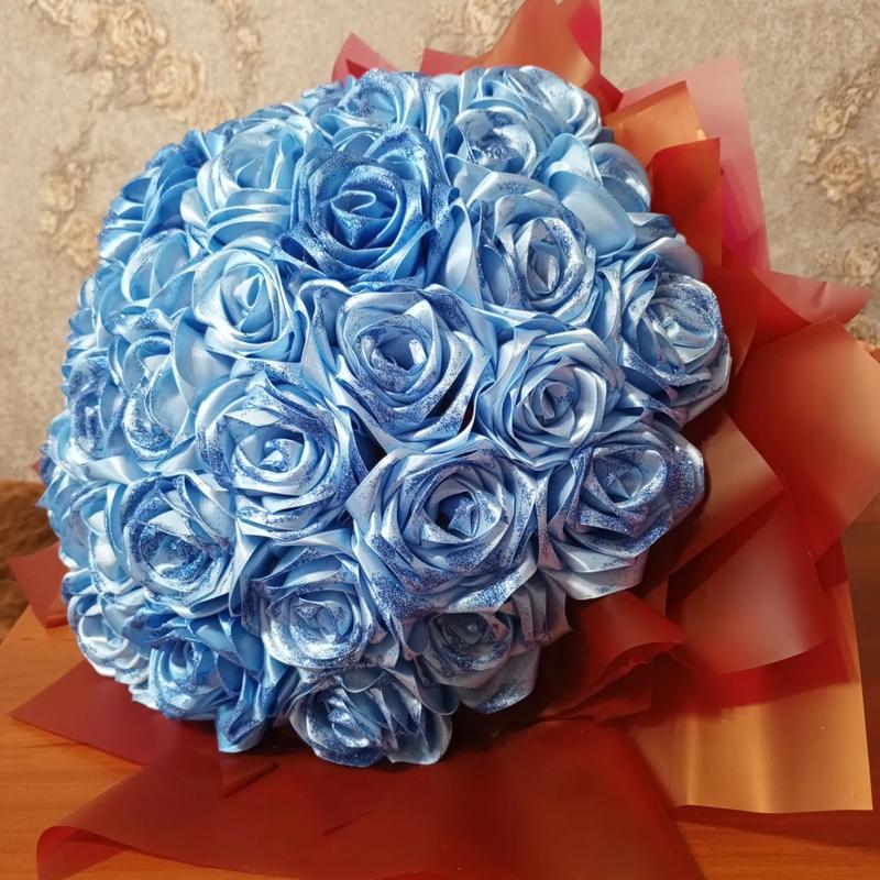 Букет из атласной ленты Отлично подойдёт для поздравления с днём рождения или любым другим праздником Подарите радость и незабываемые эмоции своим близким с букетом из атласной ленты Высота букета 45см У букете 40 роз 1200грн