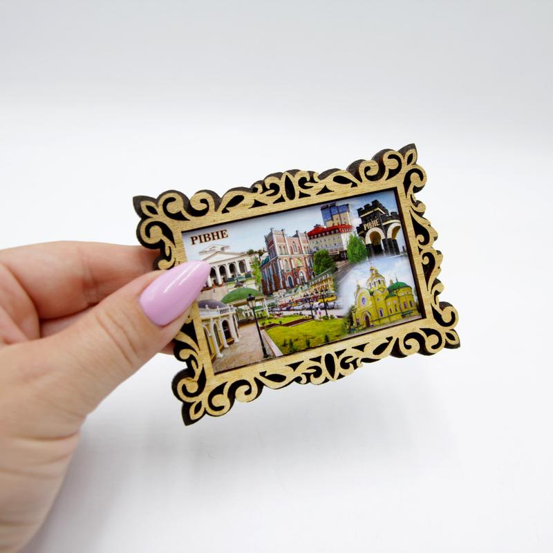 Магнит сувенирный город ровно с фигурной деревянной рамкой, ровно коллаж