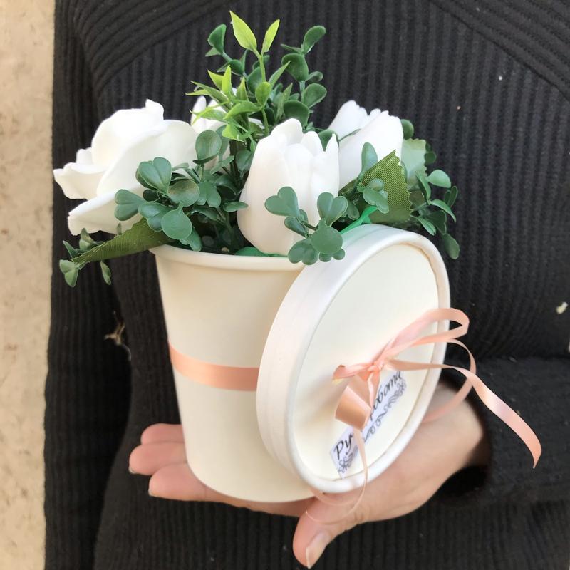 Цветы из мыло сегодня в тренде, как все необычное и эксклюзивное. Приятно дарить подарки которые способны удивить и надолго запомнится. Высота 18 см., ширина шапки 15 см. Аромат вкусно-сладкий, под названием Французское печенье. Будет упакован в подарочный пакет с лентой-бантом и мини открыткой.