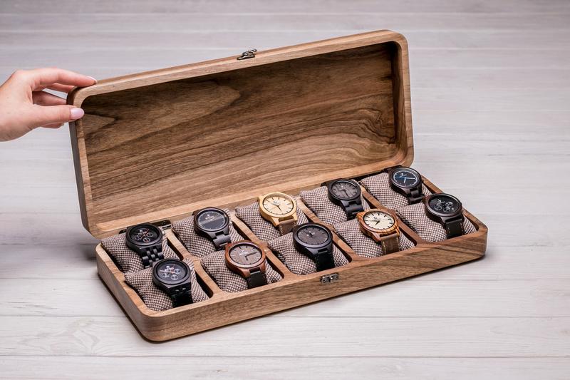 Цельная шкатулка органайзер для 10 часов с деревянной крышкой с инициалами логотипом имене...