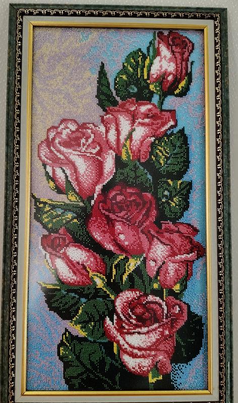 Картина вышита чешским бисером на атласе. Зашивка - повна. Ручная работа Оформлено в рамку (ширина багета 39 мм., высота 15 мм.) с антибликовым стиклом. Розми готовой работы в рамке 62,5 х 34,3 см.