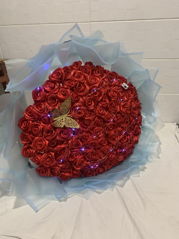 При заказе, изготовлении за короткие сроки.Одная роза на шпажке 30 грн.Но букет величественный