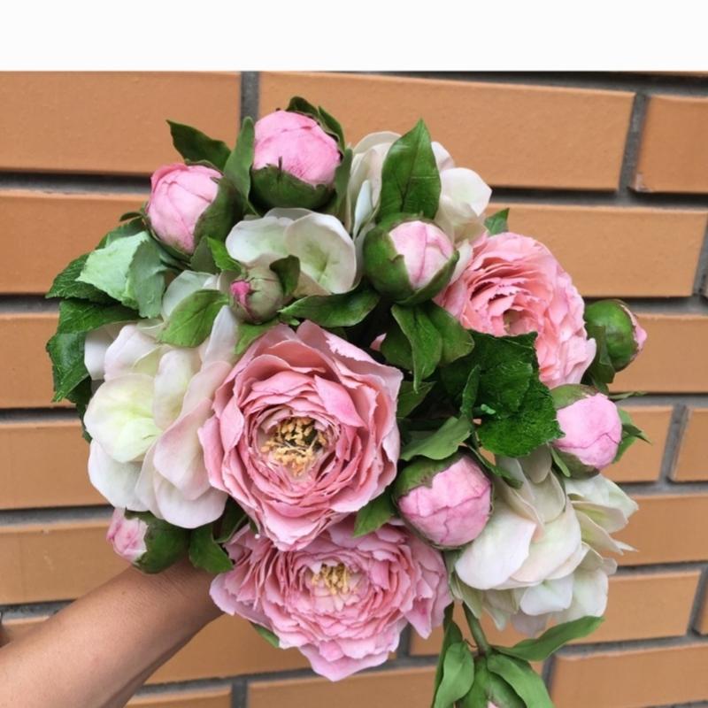 Шикарные пионы с бутонами и ветки гортензии,потресающий подарок к любому празднику.Полностью ручная работа, материал -холодный фарфор домашнего приготовления.Цветы очень реалистичны,как живые,долговечны,что будут вас радовать на годы,цвет не теряют,так как в состав добавляю проф.худож.масляные краски,можно со временем от пыли под холодным душем полоснут,форму не теряют.А также принимаю заказы на все виды цветов,композиций,заколок,цена и сроки изготовления,зависит от вида и сложности цветка,количества и моей занятости.Вся допол.инфа по запросу.