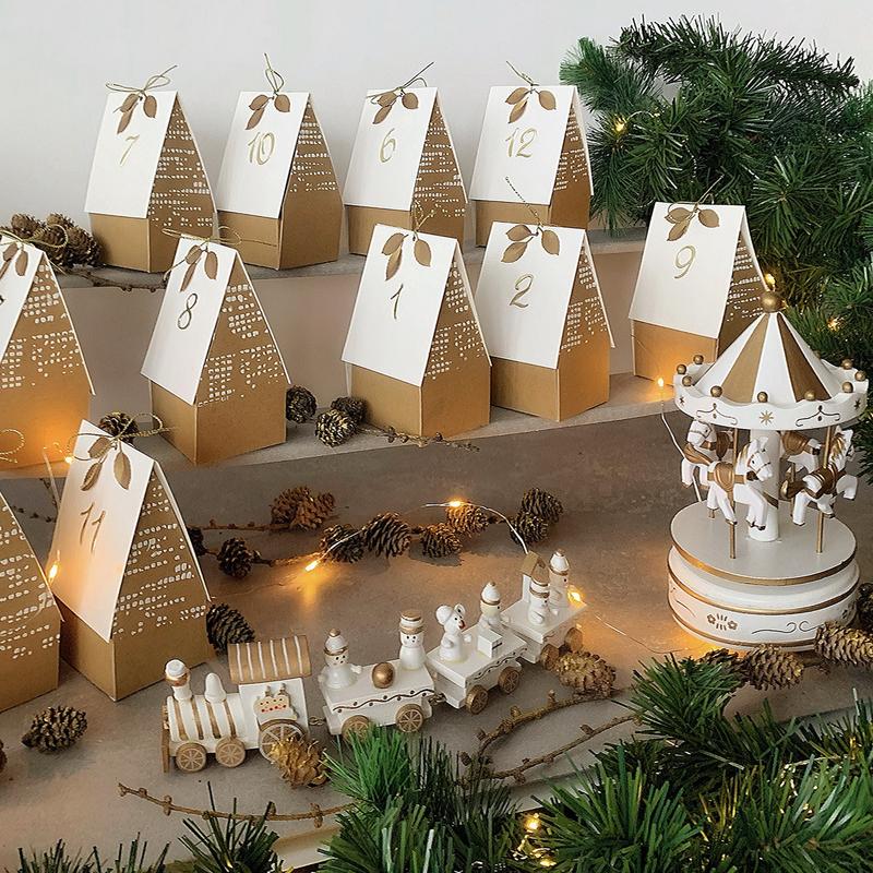 Набор для создания адвента календаря Адвент календарь - Новогодний городок. Обратный отсчет к Рождеству и Новому году! Комплект включает в себя 31 коробочку в форме домиков для небольших угощений (записок с заданиями и подсказками для поиска больших подарков). Используйте адвент календарь, чтобы отсчитывать дни до Рождества и Нового года. Этот отличный набор адвент-календаря можно собрать и склеить вместе с детьми, и это будет дополнительной радостью в ожидании праздника! ▶ Вы получите: - 31 шаблон ручной работы из дизайнерского картона, набор чисел от 1 до 31 и все необходимые украшения в подарочной упаковке. - видео с инструкцией сборки на электронную почту ▶ Размер: - 5cm x 8cm x 14.5cm высота