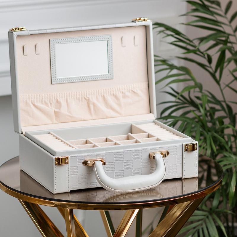 Шкатулка органайзер для украшений прямоугольная 27 х 18.5 х 9 с зеркальцем экокожа серая