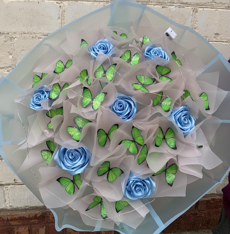 Букетик доступен с розами и без.Розы из атласных лент. Изготовление через 3-4 часа.Восстанавлю Букеты из самых бабочек делают от 400 грн