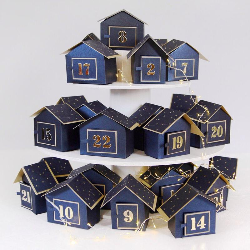 Набор для создания адвент календаря Адвент календарь - Новогодний городок. Обратный отсчет к Рождеству и Новому году! Комплект включает в себя 31 коробочку в форме домиков для небольших угощений (записок с заданиями и подсказками для поиска больших подарков). Используйте адвент календарь, чтобы отсчитывать дни до Рождества и Нового года. Этот отличный набор адвент-календаря можно собрать и склеить вместе с детьми, и это будет дополнительной радостью в ожидании праздника! ▶ Вы получите: - 31 шаблон ручной работы из дизайнерского картона, набор чисел от 1 до 31 и все необходимые украшения в подарочной упаковке. - видео с инструкцией сборки на электронную почту ▶ Размер: - 7cm x 5cm x 12cm высота - 7cm x 4cm x 10cm высота