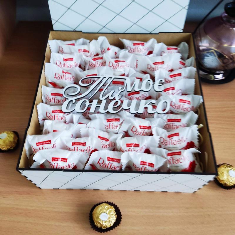 Скажите «Да» очарованию и нежности с нашими подарочными наборами, наполненными сладкими удовольствиями, которые точно покорят сердца ваших близких! День влюбленных, 8 Марта, День рождения, Новый год, И много других особенных моментов в жизни! В состав входит: 🎁 Коробка - Конфеты Raffaello 40 шт - Топер на выбор - Наполнитель - стружка 🎁 Размер коробочки: 24*24*10 Наши подарки - лучший способ выразить свои чувства
