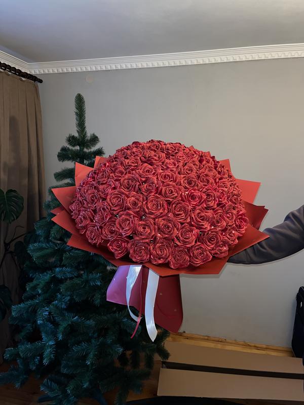Букет из атласных лент, 101 роза с блестками