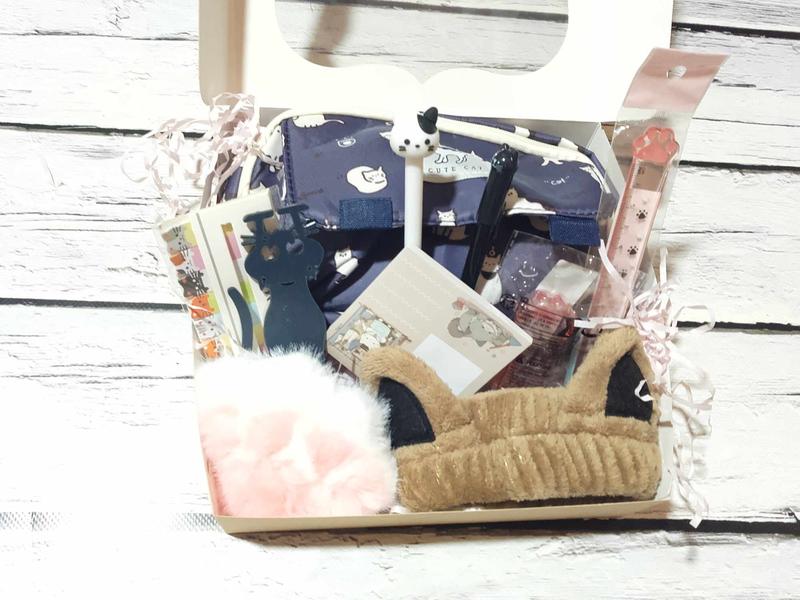 Подарочный бокс набор подарка для девочки мальчика пенал канцелярия с котами