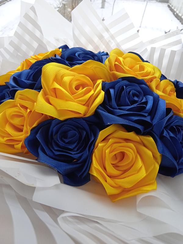 Букет из атласной ленты 21 роза