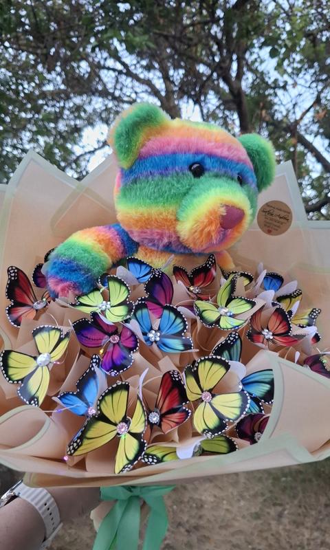 Букет из бабочек с мягкой игрушкой подарок дому любимой