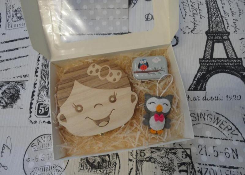Подарочный набор для ребенка В набор входит: - Детская деревяная шкатулка для зубов из натурального дерева ( ива, сосновая древесина). - Шкатулка жестяная, для ваших мелочей, - Брелок "Сова" из фетра, ручная работа По вашему желанию можно вложить надпись: love или Happy Birthday.