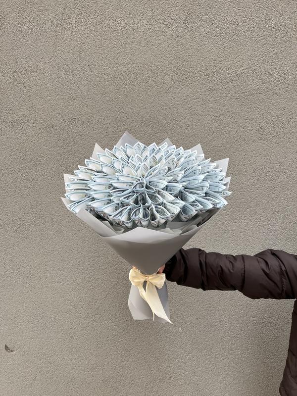 Букет из долларовых купюр, может быть размера s/m/l, на фото размер m
