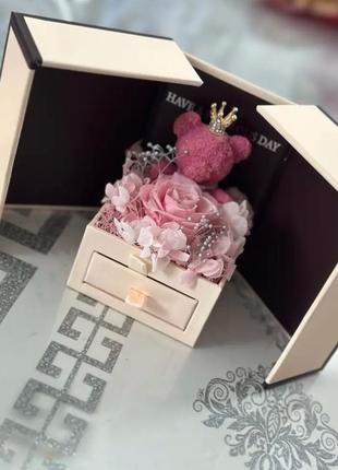 Подарочный набор “Сердце любви” 💖 Ищете идеальный подарок для любимого человека? Представляем элегантный набор, завораживающий каждую женщину! ✨ Что внутри? • Стильная подарочная коробка в виде книги с нежным бантом • Изящный мишка из роз в короне – символ нежности и любви • Декоративные цветы, придающие очарование • Скрытый ящик с изящным кулоном в форме сердца, инкрустированными камушками • Секретная деталь: в подвеску встроено 100 языковых признаний в любви! 💕 🎁 Почему стоит выбрать этот набор? ✔️ Романтичный и уникальный подарок ✔️ Подходит для любого события - День Рождения, 8 Березня, годовщина, День влюбленных ✔️ Высокое качество материалов и стильное оформление Подарите своему особому человеку эмоции, которые останутся в памяти навсегда! 🥰