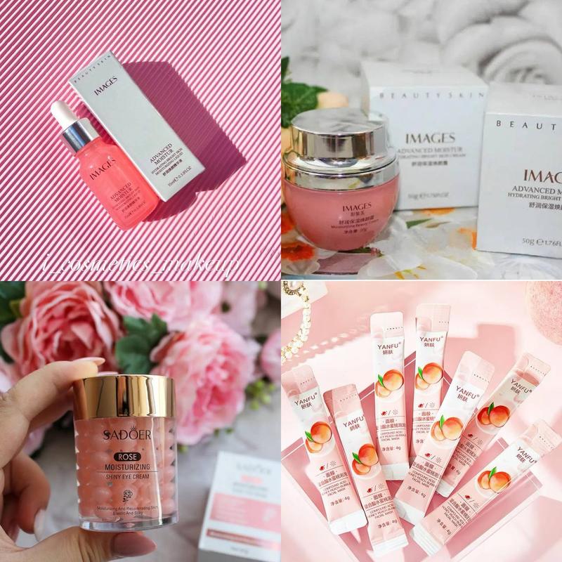 1. Images крем для обличча 2. Sadoer крем под глаза 3. Images сироватка для обличча 4. YanfuK-плексная кислотная персиковая -очищу ьная пузырьковая маска для лицо