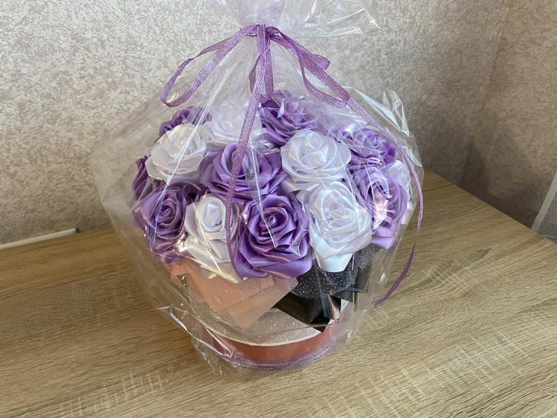 Фиолетовый подарочный букет в коробке (ручная работа)