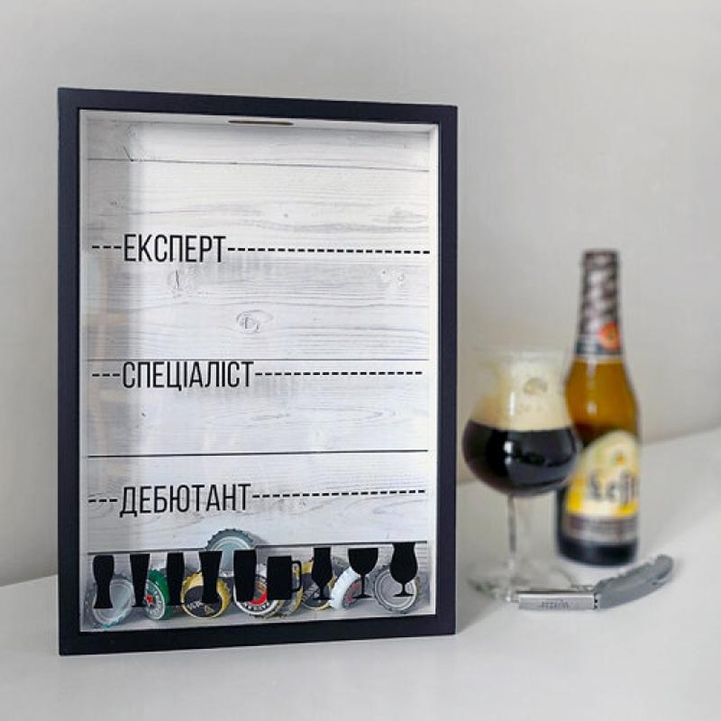 Оригинальный подарок любителям пива. Для мужчины, папы, брата, сата, друга и... для кого угодно Теперь не придется складывать в коробочку, есть специальная копилка Копилка многоразовая, задняя крышка снимается. В комплекте идет крепление для крепления на стену. Материал: крашеный МДФ, пластик. Размер: 30,5 х 21,5 х 4 см Цвет черный Производитель: Украина
