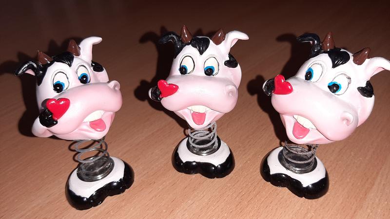Уважно читайте умови пересилки! Пересилка товара укроштой на сумму от 150 гривен с Оплатой на карту. Безопасным условием пересашиваю товар на сумму от 300 гривен. На передвижные элементы безопасной оплатой не пересасываю, только полная оплата на карту. Пересласка товара новой по почте от 200 гривен, оплата только на карту. Перед любой покупкой, любого товара писать продавцу для уточнения Статуэтка фигурка на магните Коровка декоративная на пружине 8 см