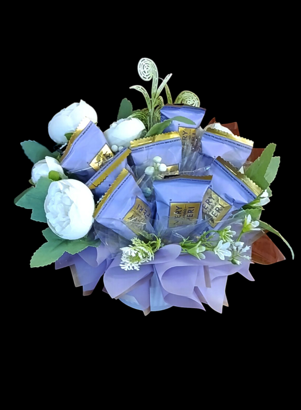 Великолепная композиция в керамической чашке, наполненная конфетами Millennium и цветками ранункулюсов. Перед отдачей заказчика упаковывается празднично в прозрачную слюду с бантом.