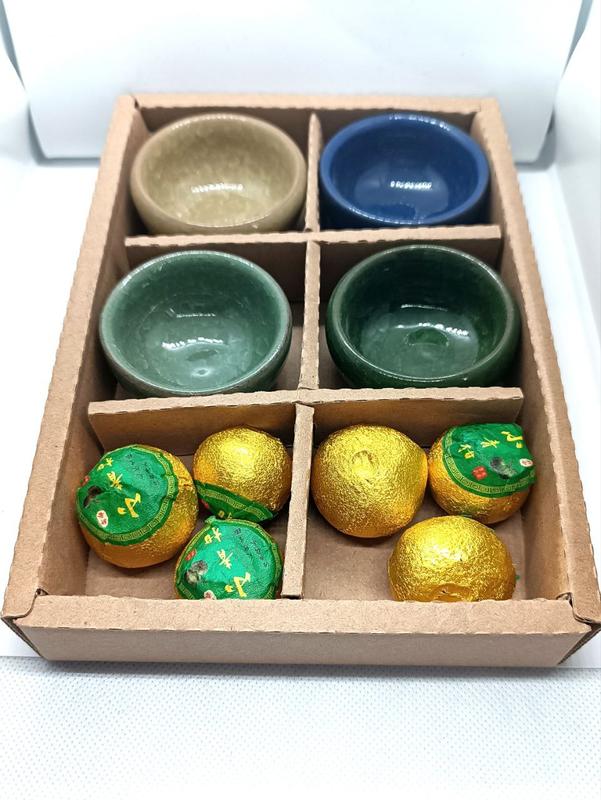 набор для чаепития чай шу руер в мандарине 6 шт + 4 пиала по 50 мл