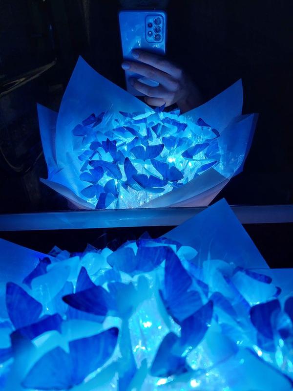 Букеты из бабочек по заказу. Отличный вариант подарок, который будет всегда напоминать о любимом человеке. Размер, количество и цвет можно выбрать самостоятельно. Цены от 400 грн.