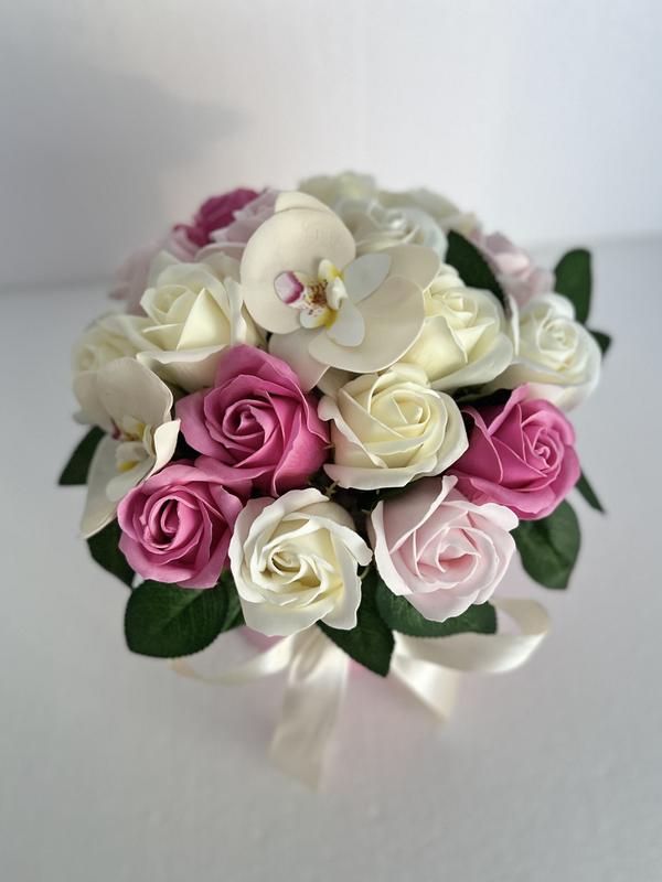 Букети з мильної піни чудові своєю довговічністю (не в'януть роками), естетичністю (виглядають як живі), мають приємний аромат, не потребують догляду, не збирають пил і можуть використовуватися для створення піни у ванній. Такий букет сподобається кожній жінці❤️