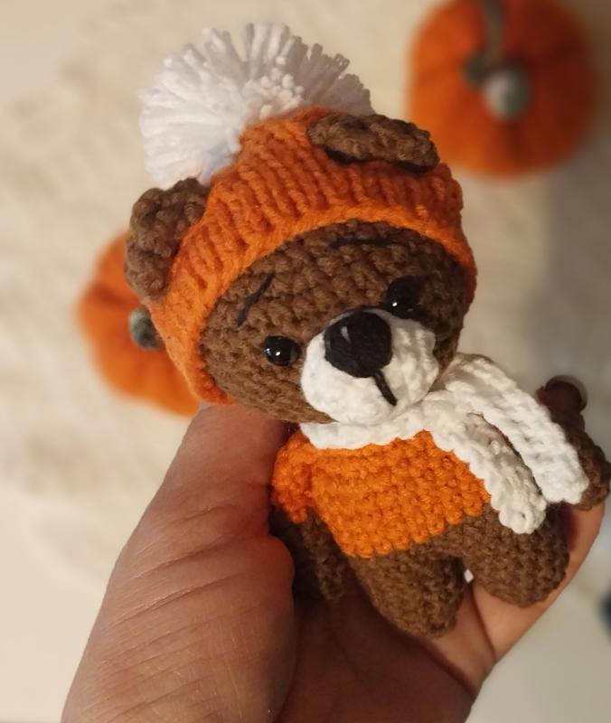 🍂 Маленькое осеннее чудо - вязаный медвежонок 🧸 В теплом свитерике и шапочке, готово дарить уют и улыбки. Ручная работа, высота всего 10 см — поместится даже в ладони