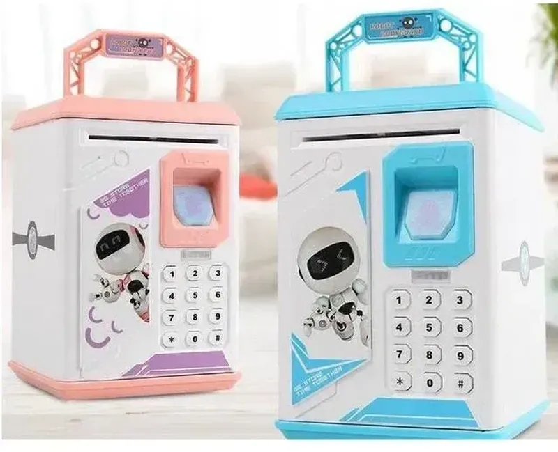 Эта электронная копилка-сейф станет прекрасным подарком любому человеку, который хочет немного накопить и оставить это в секрете. Данная копилка-сейф оснащена специальным механизмом, который срабатывает приподнятии купюры к купюроприемнику и затягивает ее внутрь, помещая в основное отделение копилки. В верхней части есть прорезь для монет, которые собираются в специальный лоток и не смешиваются с купюрами. Как и положено настоящему сейфу, у этой копилки есть сканер отпечатка пальца и кодовый замок. Отсканируйте палец или введите код и сейф откроется. Если же вы вдруг забыли закрыть дверь, копилка напомнит звуковым оповещением, что дверца открыта.