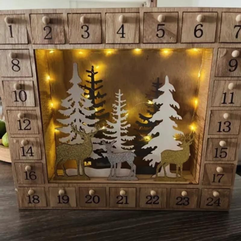 Адвент календарь для подарков материал дерево, прочный, тяжелый Работает от батареек в комптект не входят Размер 39*33.5*6.8см Подойдет для маленького подарок или записочки с заданием и тд
