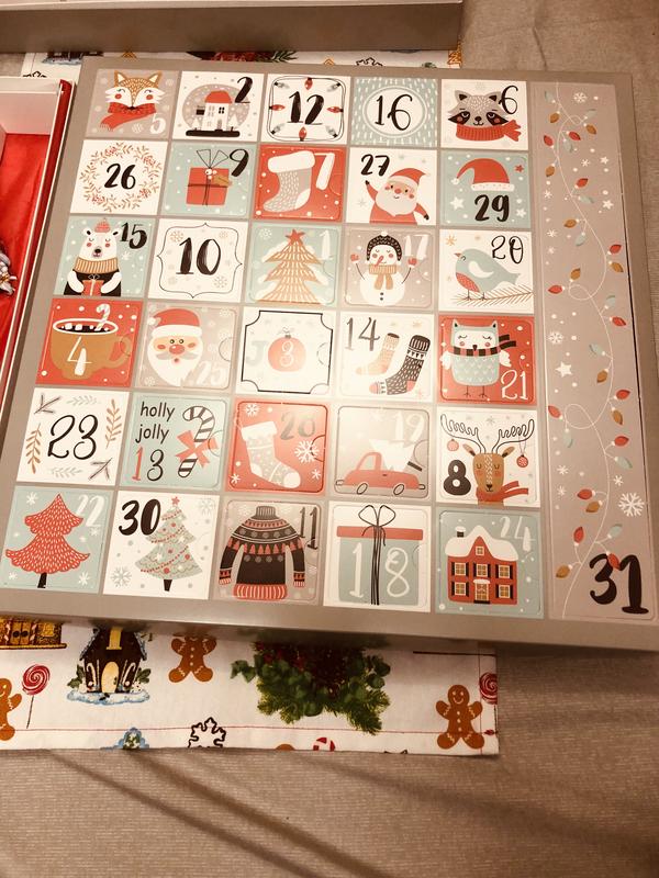 Адвент календар на 31 днів Розмір 427/427/50 30 комірок 60/60/50 з натуральним вкладенням 1 комірок 40/50/60 з маленької сюрпризом Вага продукції 850 грамів Ціна 950 грн
