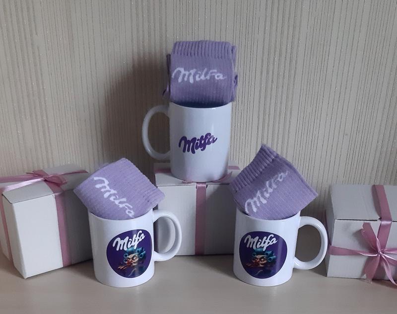Уже совсем скоро новогодние корпоративы Небольшой презент для твоей коллеги, подруги..."Milfa" В боксик входить : Чашка Материал -керамика Объем -330мл Носочки Размер 36-41 Цена 299грн Есть опт