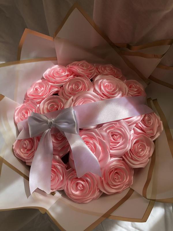 Букет із атласної стрічки троянд декоративний квіти з атласної стрічки подарунок дівчині