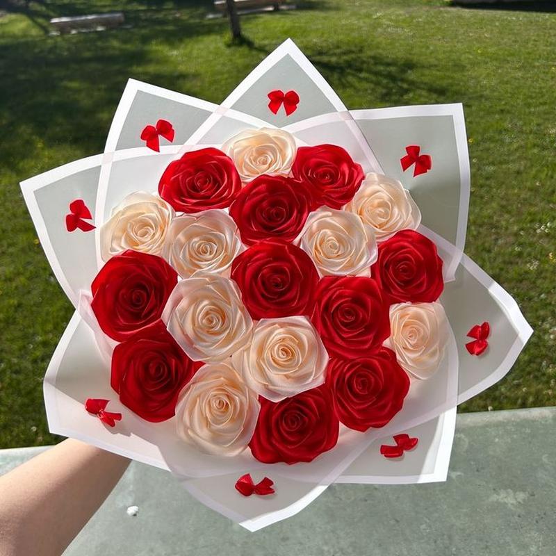 Букет із атласної стрічки троянд декоративний квіти з атласної стрічки подарунок дівчині