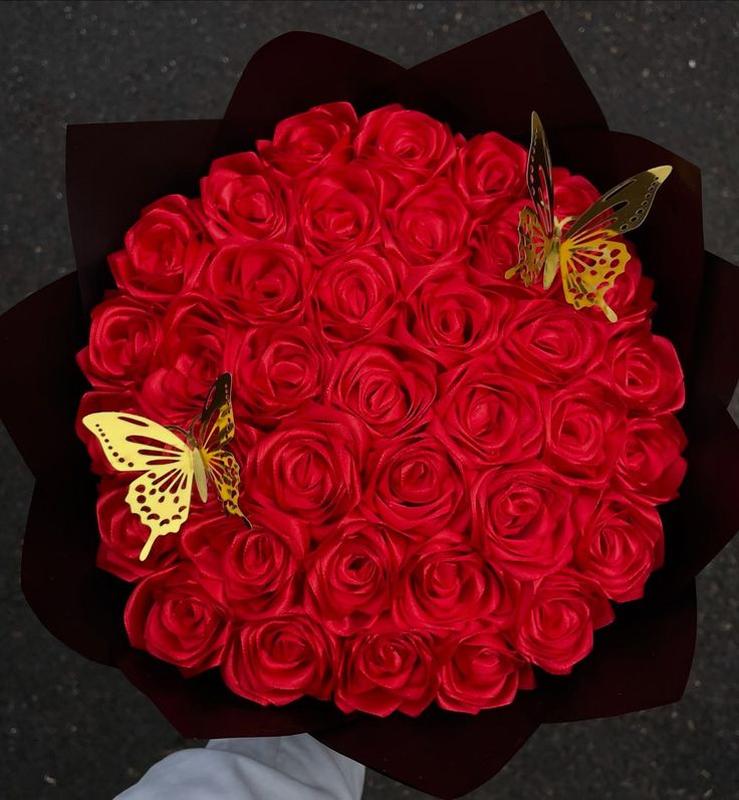 Букет із атласної стрічки троянд декоративний квіти з атласної стрічки подарунок дівчині