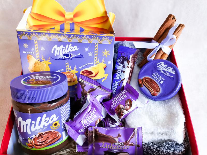 Содержимое бокса: 💜Шоколадная паста Milka 💜Тёплые носочки 💜Печенье Milka 💜Батончик и другие сладости 💜Ванильные палочки 💜Авторское оформление Также в наличии другие боксы на разный вкус и бюджет.