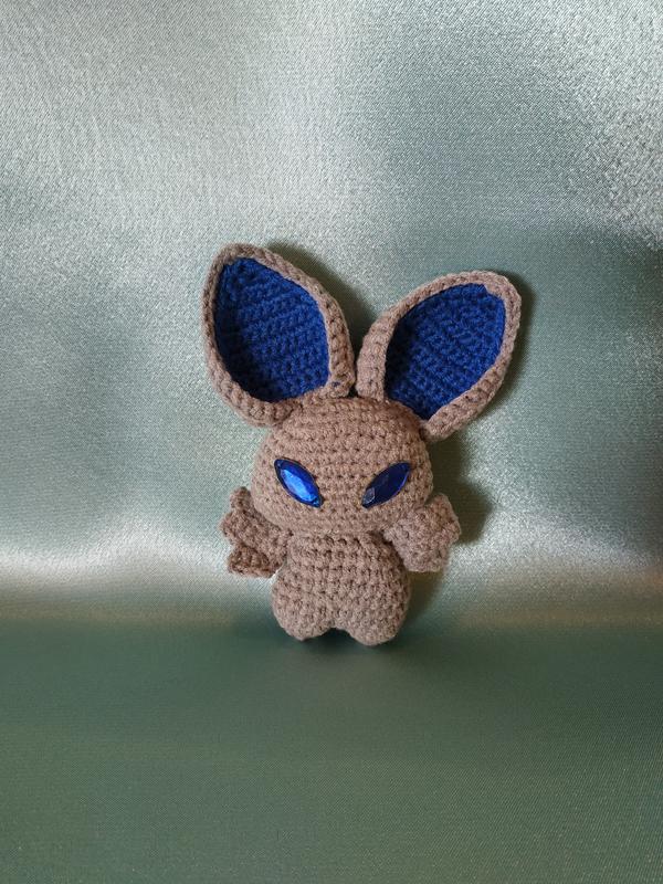 Летучая мышка Синеглазка - вязаный сувенир, подарок на Хэллоуин. Декор интерьера на Хэллоуин. Высота Мышки 12 см.