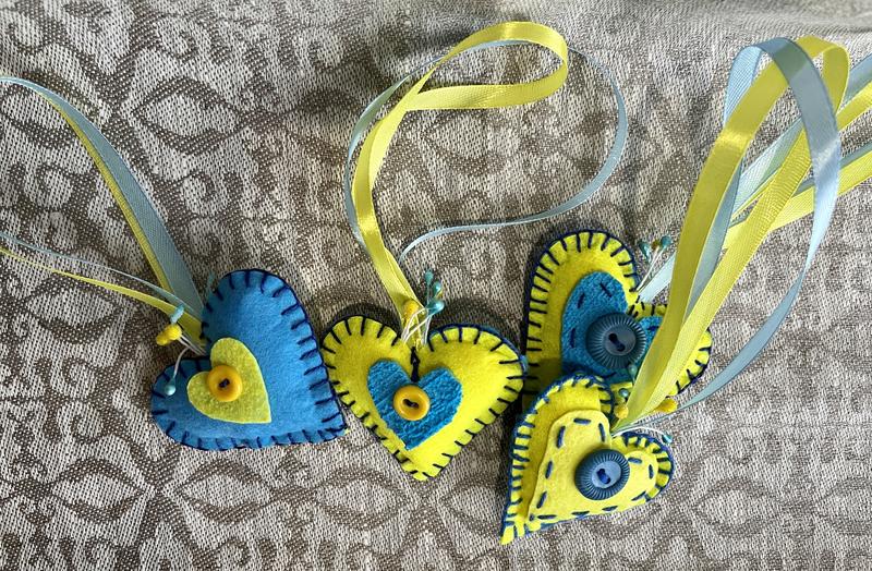 Украинские патриотические фетровые сердца Жёлто-синие сердечки Фетровые украшения Подвески