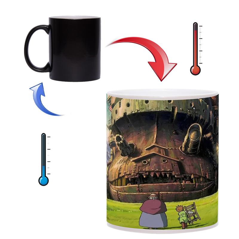 Чашка хамелеон - оригинальный подарок для Ваших друзей, коллег и близких людей. При наполнении кипятком, на чашке хамелеон проявляется изображение из мультфильма "Ходячий замок". Данная чашка будет стильным подарком к любому празднику. Сделайте обычное чаепитие ярким и интересным с чашкой хамелеон!
