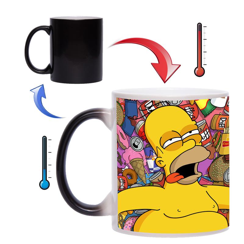 Чашка хамелеон - оригинальный подарок для Ваших друзей, коллег и близких людей. При наполнении кипятком, на чашке хамелеон проявляется изображение Гомера Симпсона. Данная чашка будет стильным подарком к любому празднику. Сделайте обычное чаепитие ярким и интересным с чашкой хамелеон!