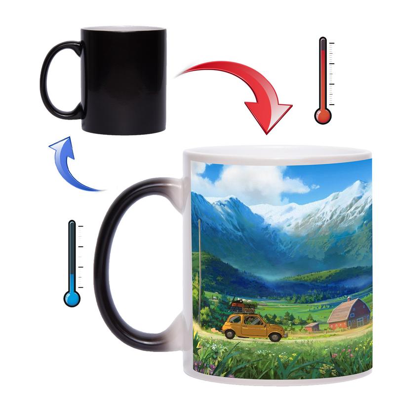 Чашка хамелеон - оригинальный подарок для Ваших друзей, коллег и близких людей. При наполнении кипятком, на чашке хамелеон проявляется пейзаж из японского мультфильма. Данная чашка будет стильным подарком к любому празднику. Сделайте обычное чаепитие ярким и интересным с чашкой хамелеон!