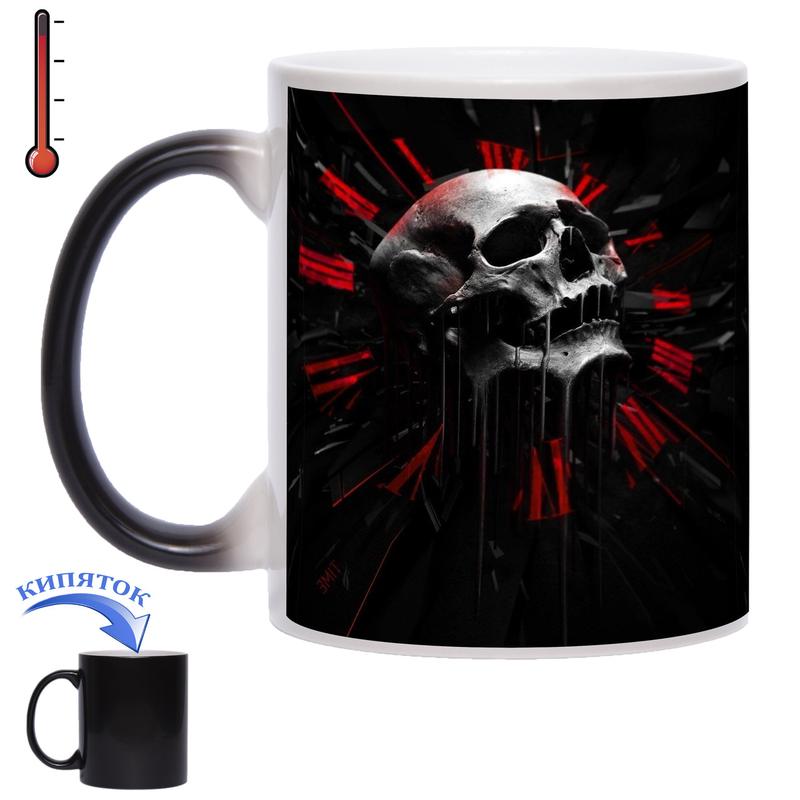 Чашка хамелеон - оригинальный подарок для Ваших друзей, коллег и близких людей. При наполнении кипятком, на чашке хамелеон проявляется рисунок черепа. Данная чашка будет стильным подарком к любому празднику. Сделайте обычное чаепитие ярким и интересным с чашкой хамелеон!
