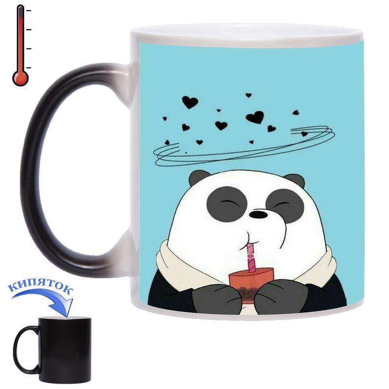 Чашка хамелеон - оригінальний подарунок для Ваших друзів, колег і близьких людей. При наповненні окропом, на чашці хамелеон проявляється графічний малюнок панди c сердечками. Ця чашка буде стильним подарунком до будь-якого свята. Зробіть звичайне чаювання яскравим і цікавим з чашкою хамелеон!
