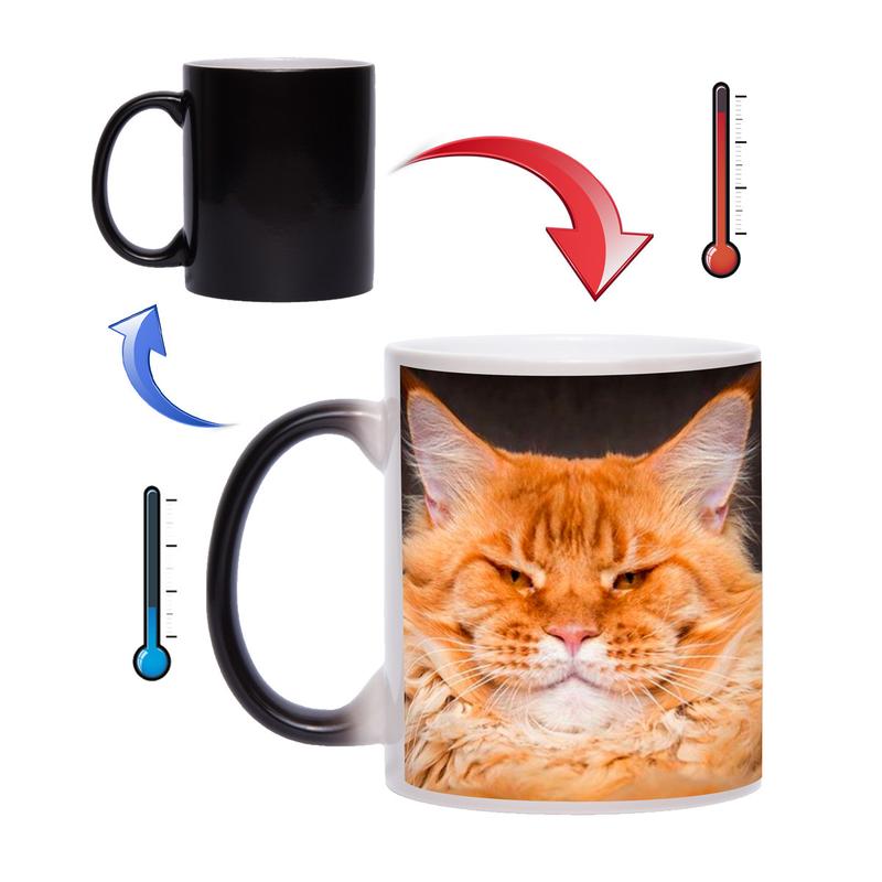 Чашка хамелеон - оригинальный подарок для Ваших друзей, коллег и близких людей. При наполнении кипятком, на чашке хамелеон проявляется красивое изображение рыжего кота. Данная чашка будет стильным подарком к любому празднику. Сделайте обычное чаепитие ярким и интересным с чашкой хамелеон!