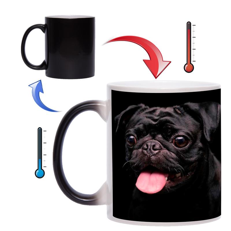 Чашка хамелеон - оригинальный подарок для Ваших друзей, коллег и близких людей. При наполнении кипятком, на чашке хамелеон проявляется милое изображение мопсика. Данная чашка будет стильным подарком к любому празднику. Сделайте обычное чаепитие ярким и интересным с чашкой хамелеон!