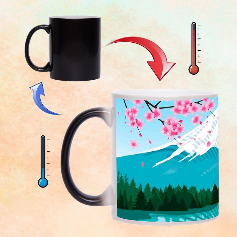 Чашка хамелеон - оригинальный подарок для Ваших друзей, коллег и близких людей. При наполнении кипятком, на чашке хамелеон проявляется красивое изображение японской горы Фудзияма. Данная чашка будет стильным подарком к любому празднику. Сделайте обычное чаепитие ярким и интересным с чашкой хамелеон!